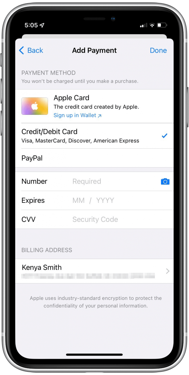 - If you want to use a new method of payment, tap Insert Payment Method.