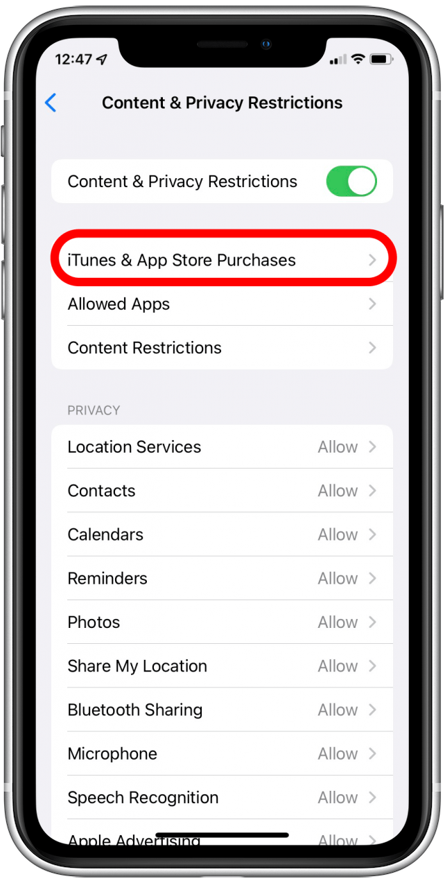 - If you don’t want to interfere with your other limitations, faucet iTunes & App Retailer Buys.